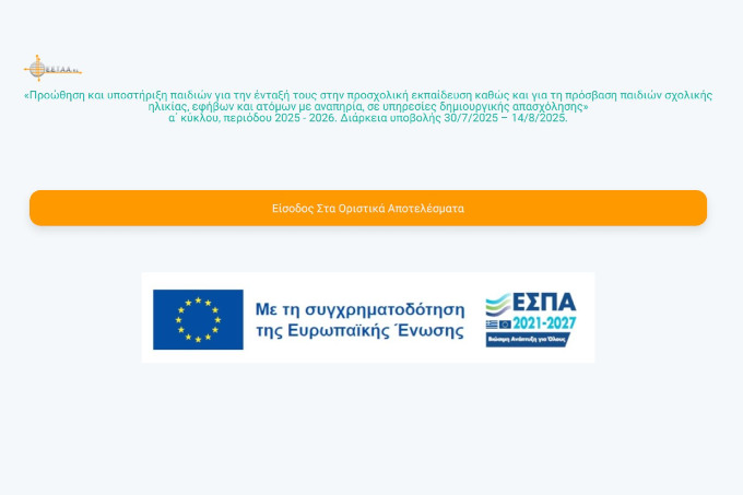 Την Δευτέρα 1 Σεπτεμβρίου 2025 αναρτήθηκαν τα οριστικά αποτελέσματα για τα voucher σε παιδικούς σταθμούς, ΚΔΑΠ και ΚΔΑΠ ΜΕΑ.