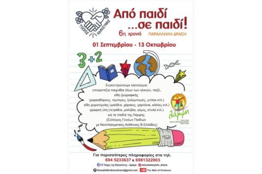 «Από Παιδί σε Παιδί»: Για 6η συνεχή χρονιά από τον «Τοίχο της Καλοσύνης Δράμας»