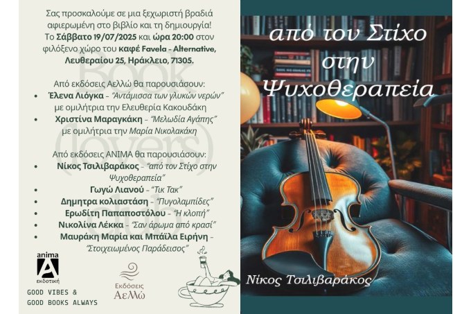 «από τον Στίχο στην Ψυχοθεραπεία»: Μια ξεχωριστή βραδιά για το βιβλίο στο Ηράκλειο Κρήτης