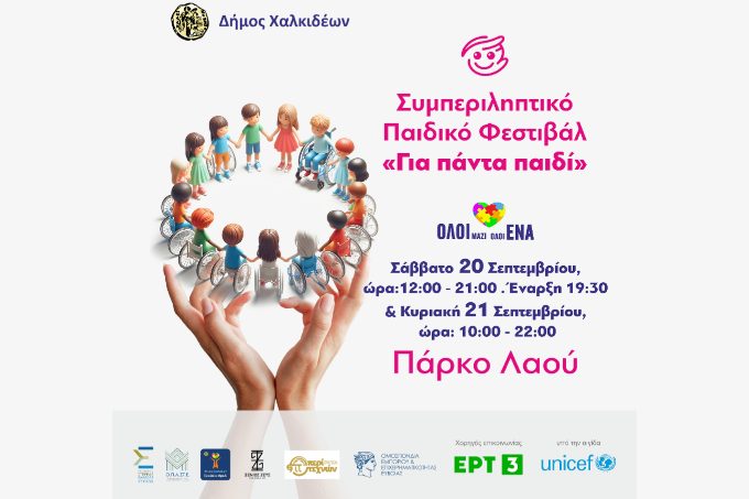 Ο Δήμος Χαλκιδέων, με αφορμή τη συμπλήρωση 2 ετών λειτουργίας του Γραφείου ΑμεΑ, διοργανώνει το 2ο Συμπεριληπτικό Παιδικό Φεστιβάλ Χαλκίδας «Για πάντα παιδί», το Σάββατο 20 Σεπτεμβρίου και την Κυριακή 21 Σεπτεμβρίου 2025, στο Πάρκο του Λαού, υπό την αιγίδα της UNICEF, με την υποστήριξη της Περιφέρειας Στερεάς Ελλάδας και του Ο.ΠΑ.ΣΤ.Ε και τη συνεργασία σχολείων, φορέων, συλλόγων και εθελοντικών οργανώσεων και του Nevronas, στο πλαίσιο της σταθερής του δέσμευσης για την ενίσχυση της συμπερίληψης και της ορατότητας των ανάπηρων καλλιτεχνών, συμμετέχει και φέτος. Το Φεστιβάλ παρουσιάζει το Θέατρο Περί Τεχνών και χορηγός επικοινωνίας είναι η ΕΡΤ3.