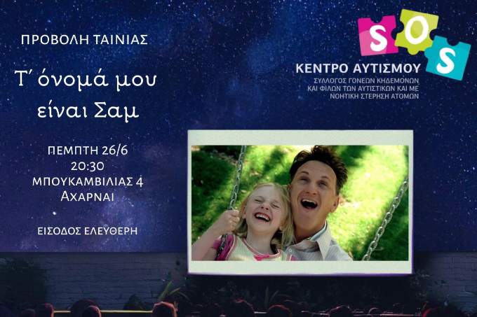 Το Κέντρο Αυτισμού “SOS” σας προσκαλεί στην προβολή της ταινίας «Το όνομα μου είναι Σαμ».