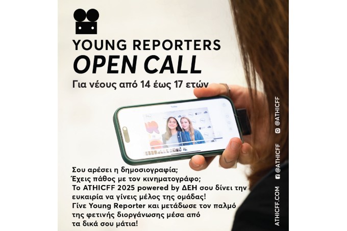 Όσοι θα συμμετάσχουν στο πρόγραμμα Υoung Reporters 2025, εξασφαλίζουν αμέσως διπλές προσκλήσεις για προβολές του Φεστιβάλ στις 15-16 Νοεμβρίου.