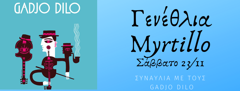 Το MYRTILLO μας προσκαλεί να γιορτάσουμε όλοι μαζί τα 6 χρόνια λειτουργίας του, το Σάββατο 23 Νοεμβρίου 2019 με μια μεγάλη συναυλία από τους Gadjo Dilo!
