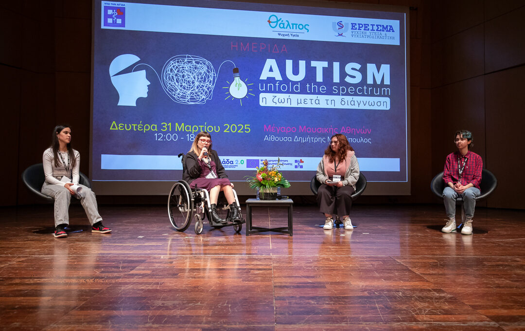 Η Νάνσυ Παναγουλοπούλου, δημοσιογράφος του Nevronas, συντόνισε μία συζήτηση μεταξύ τριών νεαρών αυτιστικών γυναικών, της Μαίρης Μητσάκη (23 ετών) και της Δήμητρας Χασούρη (21 ετών), σπουδάστριες μουσικής, οι οποίες διαχειρίζονται την σελίδα Autism Greece και συνεργάτιδες του Νevronas και της Ευθυμιάννας Φοινίδου, μιας νεαρής μαθήτριας (17 ετών), με συμμετοχές σε πολλές σχολικές και εξωσχολικές δραστηριότητες (συγγραφή άρθρων και δημιουργία σκίτσων στην σχολική εφημερίδα, μέλος της ομάδας που συμμετέχει στην βουλή των εφήβων, επί 11 χρόνια  πρόσκοπος στο 2ο Σύστημα Προσκόπων Μοσχάτου και επί 14 χρόνια σπουδάστρια χορού-μπαλέτο, μοντέρνος και σύγχρονος χορός).