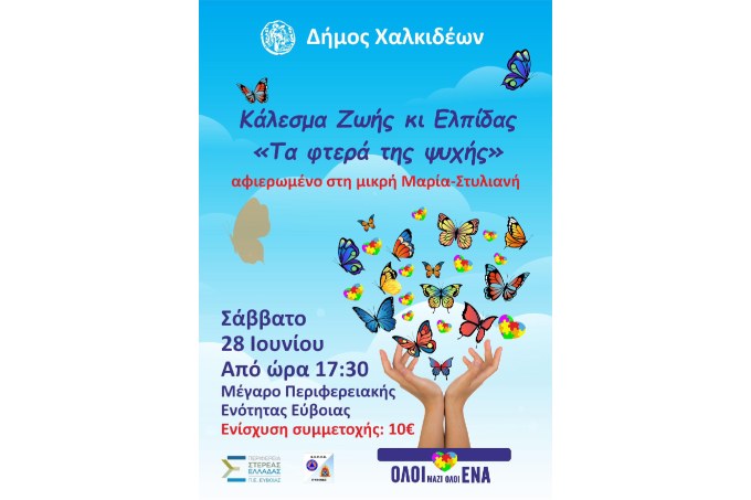 Δράση αλληλεγγύης διοργανώνει ο Δήμος Χαλκιδέων, ενώνοντας δυνάμεις με την Εθελοντική Ομάδα Περιβαλλοντικών και Ανθρωπογενών Καταστροφών Εύβοιας (Ε.Ο.Π.Κ.Ε) και με την υποστήριξη της Περιφέρειας Στερεάς Ελλάδας, προκειμένου να συγκεντρωθούν τα χρήματα που απαιτούνται για τη μικρή Μαρία-Στυλιανή, που χρειάζεται βοήθεια για τη διευκόλυνση της καθημερινότητάς της.
