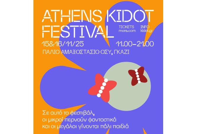 Σε λιγότερο από έναν μήνα, η Αθήνα υποδέχεται για πρώτη φορά το KIDOT Festival, το μεγαλύτερο φεστιβάλ για όλη την οικογένεια που έχει ήδη καθιερωθεί ως θεσμός. Μετά από 7 επιτυχημένες διοργανώσεις στη Θεσσαλονίκη, 90.000 επισκέπτες και περισσότερες από 1.000 δράσεις, το KIDOT κάνει το επόμενο βήμα και έρχεται να ανανεώσει τη family ατζέντα της Αθήνας, φέρνοντας μαζί του έναν μοναδικό συνδυασμό ψυχαγωγίας, εκπαίδευσης και κοινωνικής ευαισθητοποίησης.