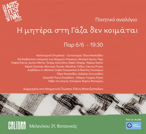 Μια βραδιά/μέρα ποίησης αφιερωμένη στην Παλαιστίνη, στον πολυχώρο Calibra!