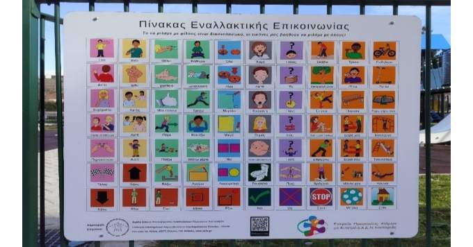 - Την τοποθέτηση πινάκων εναλλακτικής επικοινωνίας στις παιδικές χαρές της Χλόης, του Ντολτσό, του πάρκου Ολυμπιακής Φλόγας και της πλατείας Μανιάκων. Οι πίνακες αυτοί διευκολύνουν την επικοινωνία μη λεκτικών ατόμων στο φάσμα του αυτισμού