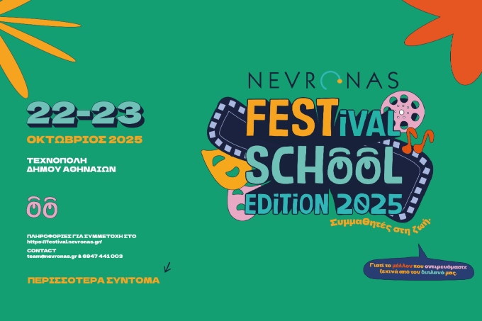 Σε μια εποχή που η έννοια του σχολείου και οι τρόποι της εκπαίδευσης μετασχηματίζονται, το Nevronas FESTival School Edition – εμπνευσμένο από το βραβευμένο σε ευρωπαϊκό και εθνικό επίπεδο Nevronas FESTival, δεν προτείνει απλώς μια ακόμη σχολική έξοδο. Προσκαλεί τους μαθητές και τις μαθήτριες σε εμπειρίες μάθησης, συνύπαρξης και έμπνευσης.