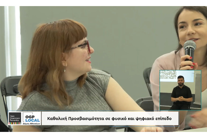 Τον οργανισμό μας εκπροσώπησαν η Νάνσυ Παναγουλοπούλου, δημοσιογράφος και η Στέλλα Καμπούρη, υπεύθυνη εκπαιδευτικών προγραμμάτων, Εκπαιδεύτρια ατόμων με αναπηρία. Βρεθήκαμε με παλιούς φίλους και συμμάχους στον αγώνα για την εξασφάλιση της προσβασιμότητας και της συμπερίληψης, αλλά όπως σημειώθηκε και στην κυρία Έλενα Μαντζαβίνου, Εντεταλμένη Δημοτική Σύμβουλο Προσβασιμότητας, η αξία της συνάντησης αυτής έγκειται κυρίως στην συμμετοχή στα κοινά ως εμπειρογνώμονες: