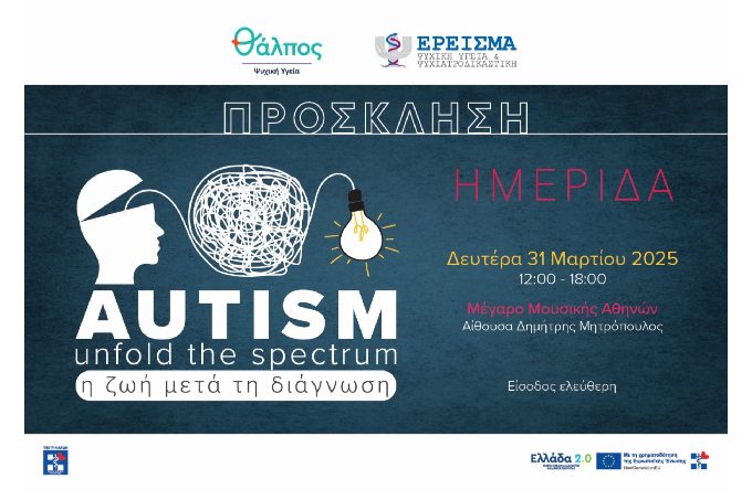 Ο Φορέας Ψυχικής Υγείας «Θάλπος» σε συνεργασία με τον Φορέα «Έρεισμα, Ψυχική Υγεία και Ψυχιατροδικαστική», με αφορμή την Παγκόσμια Ημέρα Αυτισμού, διοργανώνουν τη Δευτέρα 31 Μαρτίου 2025, στις 12.00 – 18.00 την ημερίδα «Autism:Unfold the Spectrum – η ζωή μετά τη διάγνωση», στο Μέγαρο Μουσικής Αθηνών, στην αίθουσα Δημήτρης Μητρόπουλος. Ο Nevronas συμμετέχει με την συζήτηση “Γυναίκες στο Φάσμα”: Η Μαίρη Μητσάκη (23 ετών) και η Ντέμη Χασούρη (21 ετών), σπουδάστριες μουσικής στο φάσμα του αυτισμού, οι οποίες διαχειρίζονται την σελίδα Autism Greece και συνεργάτιδες του Νevronas, μαζί με την Ευθυμιάνα Φοινίδου (17 ετών), ανεβαίνουν στην σκηνή του Μεγάρου Μουσικής για να μοιραστούν με το κοινό σκέψεις, βιώματα, εμπειρίες και όνειρα. Την συζήτηση συντονίζει η Δημοσιογράφος του Nevronas Νάνσυ Παναγουλοπούλου.