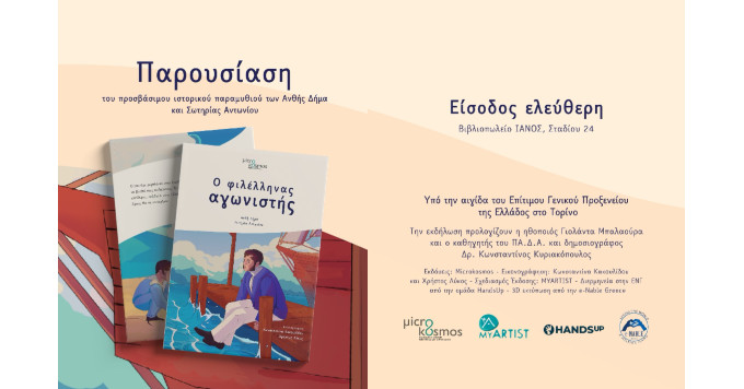 Την Τετάρτη 8 Ιανουαρίου 2026, από 17:30 έως 19:00, θα πραγματοποιηθεί στο Βιβλιοπωλείο ΙΑΝΟΣ (Σταδίου 24, Αθήνα) η παρουσίαση του προσβάσιμου ιστορικού παραμυθιού «Ο φιλέλληνας αγωνιστής», ενός βιβλίου που φέρνει την ιστορία πιο κοντά σε όλα τα παιδιά, χωρίς αποκλεισμούς.