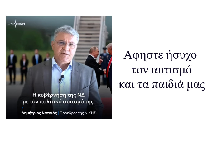 Για ακόμα μία φορά ο αυτισμός χρησιμοποιείται ως μειωτικός χαρακτηρισμός και μάλιστα από αρχηγό κόμματος και εκπαιδευτικό (;) Ο πρόεδρος της Νίκης, Δημήτριος Νατσιός, δήλωσε ότι «η κυβέρνηση της ΝΔ με τον πολιτικό αυτισμό της έχει καθηλώσει τη χώρα μας στον πάγκο με τα αζήτητα».