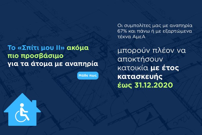 Προβλέπεται ειδική επιλεξιμότητα ακινήτων για ΑμεΑ: Για δικαιούχους που είναι άτομα με αναπηρία (ΑμεΑ) με ποσοστό τουλάχιστον 67%, ή έχουν εξαρτώμενα τέκνα με αναπηρία με το ίδιο ποσοστό, επεκτείνεται το έτος κατασκευής των επιλέξιμων ακινήτων έως και τις 31.12.2020. Η επιλεξιμότητα τεκμηριώνεται μέσω των στοιχείων του Κέντρου Πιστοποίησης Αναπηρίας (ΚΕΠΑ) ή άλλων αρμόδιων αρχών. Η ρύθμιση αυτή αποσκοπεί στην κάλυψη των ιδιαίτερων στεγαστικών αναγκών των εν λόγω δικαιούχων, επιτρέποντας την επιλογή κατοικιών που πληρούν τις προδιαγραφές του Νέου Οικοδομικού Κανονισμού και προσφέρουν βελτιωμένη προσβασιμότητα.