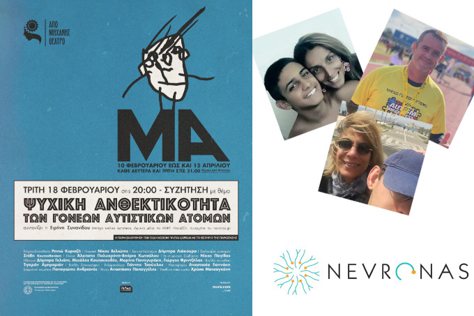 Την Τρίτη 18.2, στις 20:00, στο «Από Μηχανής Θέατρο», στο πλαίσιο της θεατρικής παράστασης «Μα» για τον αυτισμό, συζητάμε για την Ψυχική ανθεκτικότητα των γονέων αυτιστικών ατόμων, σε μια εκδήλωση που οργάνωσε και έχει επιμεληθεί o Nevronas, σε συνεργασία με την ΑΜΚΕ ΜοιαΖΩ.