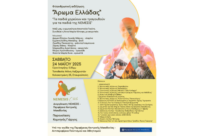 Σε λίγες ημέρες, η Καμπάνια Αγάπης Cancel Cancer, θα φιλοξενηθεί σε ένα από τα πιο όμορφα σημεία της πόλης μας! Σας προσκαλούμε στη φιλανθρωπική εκδήλωση “Άρωμα Ελλάδας” της Καμπάνιας Αγάπης Cancel Cancer του σωματείου ΝΕΜΕΣΙΣ, για να στηρίξουμε όλοι μαζί τα παιδιά μας που γενναία μάχονται ενάντια στον καρκίνο!
