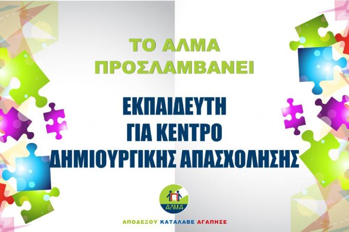 Περιγραφή θέσης: Εκπαιδευτής/τρια Ειδικής Αγωγής (Ειδ. Παιδαγωγός, Καθηγητής Ειδικής Φυσικής Αγωγής, β. εργοθεραπευτή) μερικής απασχόλησης ορισμένου χρόνου για απογευματινό ωράριο.
