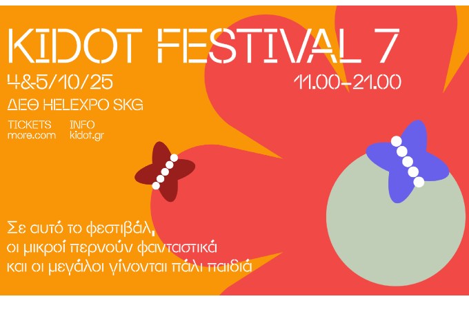 Μετά τη συναρπαστική περσινή διοργάνωση που ήταν πιο εξελιγμένη από ποτέ, το KIDOT Festival 7 έρχεται να αλλάξει τα δεδομένα στα family festivals με ένα πλούσιο πρόγραμμα βιωματικών δράσεων και ξέφρενης διασκέδασης για μικρούς και μεγάλους!