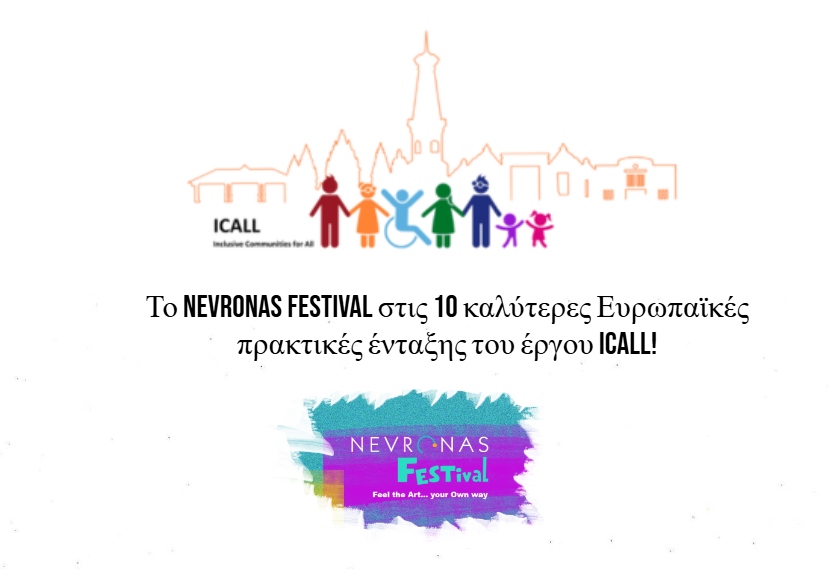Με τη χρηματοδότηση της Ευρωπαϊκής Ένωσης, στο έργο “ICALL: Κοινότητες χωρίς αποκλεισμούς για όλους”, έγινε συλλογή επιτυχημένων πρακτικών όσον αφορά τις τοπικές κοινότητες χωρίς αποκλεισμούς για άτομα με αναπηρία σε επίπεδο ΕΕ. Ανάμεσα στις 10 πρακτικές που ξεχώρισαν συγκαταλέγεται και το Nevronas FESTival!