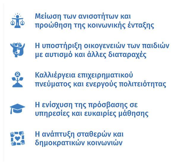 Μέσα από εκπαιδευτικές, κοινωνικές και ψυχοκοινωνικές δράσεις, επιδιώκουμε να προωθήσουμε την κατανόηση, την αποδοχή και την ισότιμη ένταξη όλων των ανθρώπων στην κοινωνία, ανεξαρτήτως διαφορών ή διαγνώσεων.